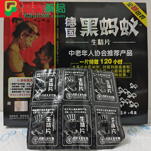 德國黑螞蟻生精片是香港天龍生物科技(國際)集團公司醫藥研究中心經過多年精心研究,2003年經臨床試驗成功後推出市場的最新美國偉哥替代品,最佳犀利士挑戰者,能促進陰莖快速增長、增粗、增大、能有效解決性愛短暫,防止早洩、延長性愛時間。而且能在人體內留存120小時,不會產生任何副作用及依賴性。沒有臉紅、心跳加速、噁心頭痛等反應,而且不受心髒病、高血壓、糖尿病的影響,對前列腺患者有良好的療效,酒後服用不影響效果。