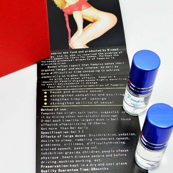 Famprox女用春藥是由美國Nixmed公司研制的專門用于提高女性性欲,解決女性性欲低下的最新生物制劑産品,效果明顯。服用者普遍感覺舒服且成分安全,無毒副作用,無成瘾性,是國內同類産品難以比擬的純天然女用催情水,目前在海外以及港台地區銷量很大(有些人不僅僅用于性刺激)。